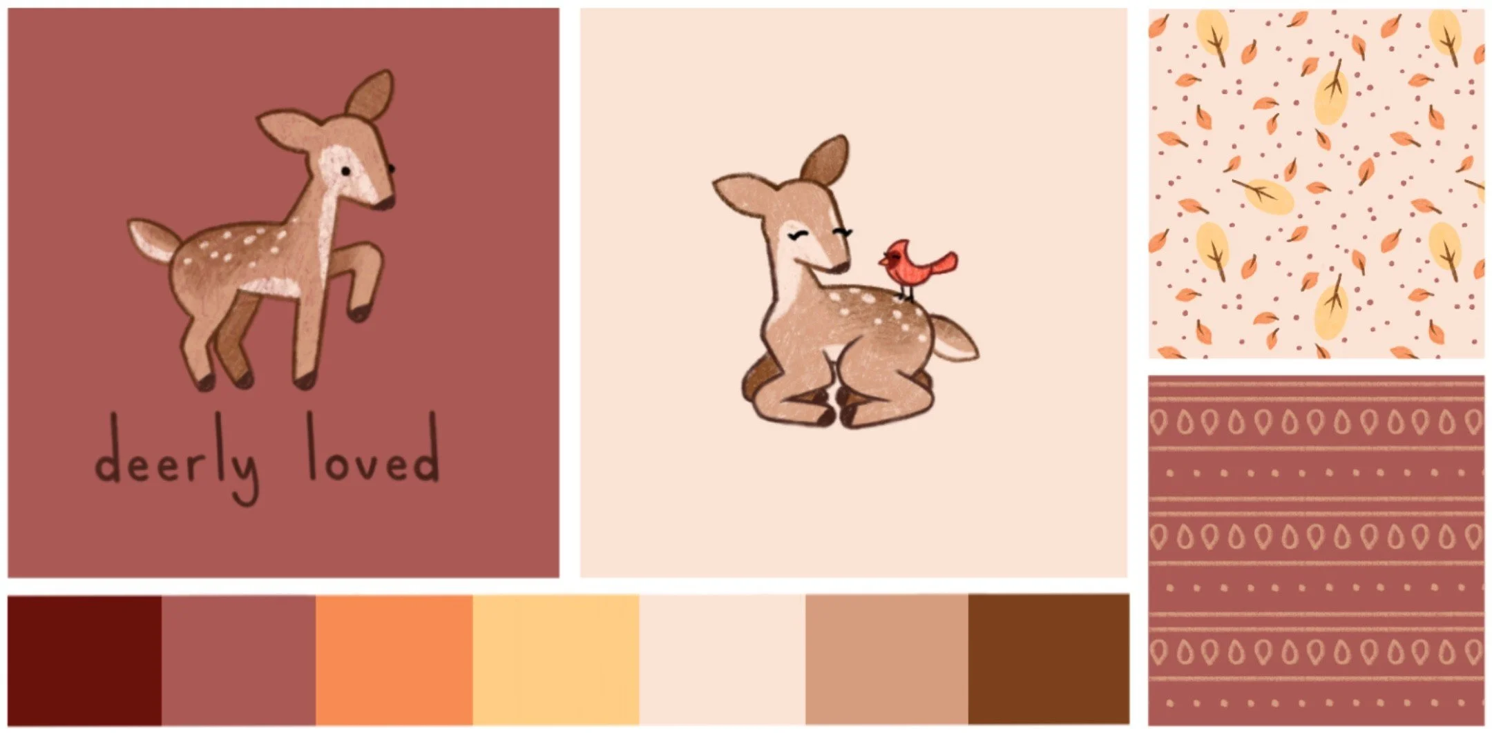 I was tasked with creating an autumnal collection for Carter’s. Keeping the demographic centered for toddler girls, I aimed for calming, warm colors with enDEERing characters.